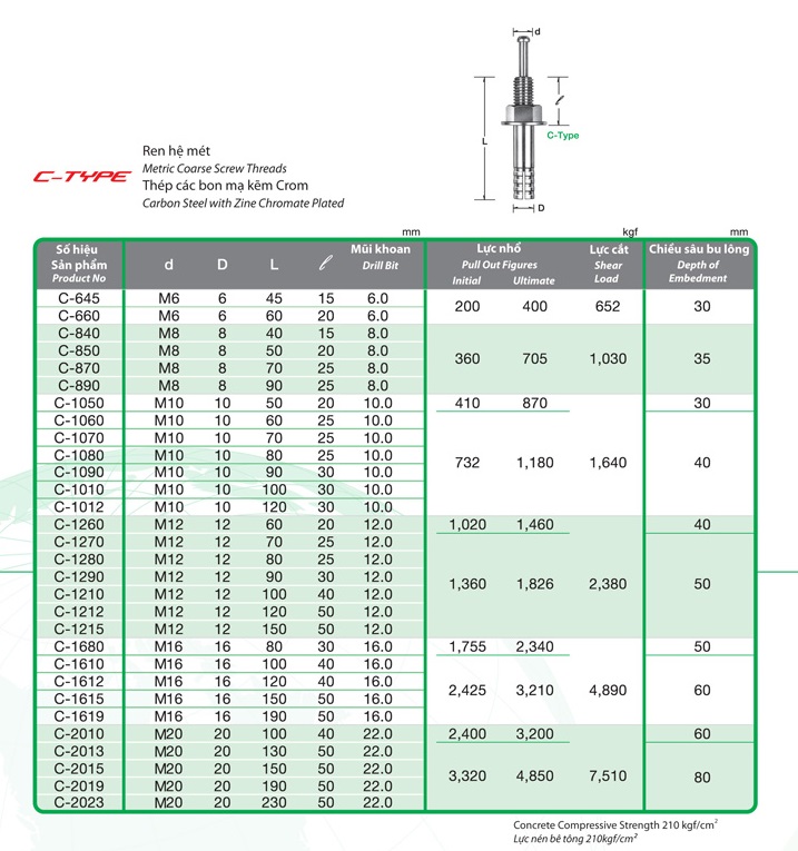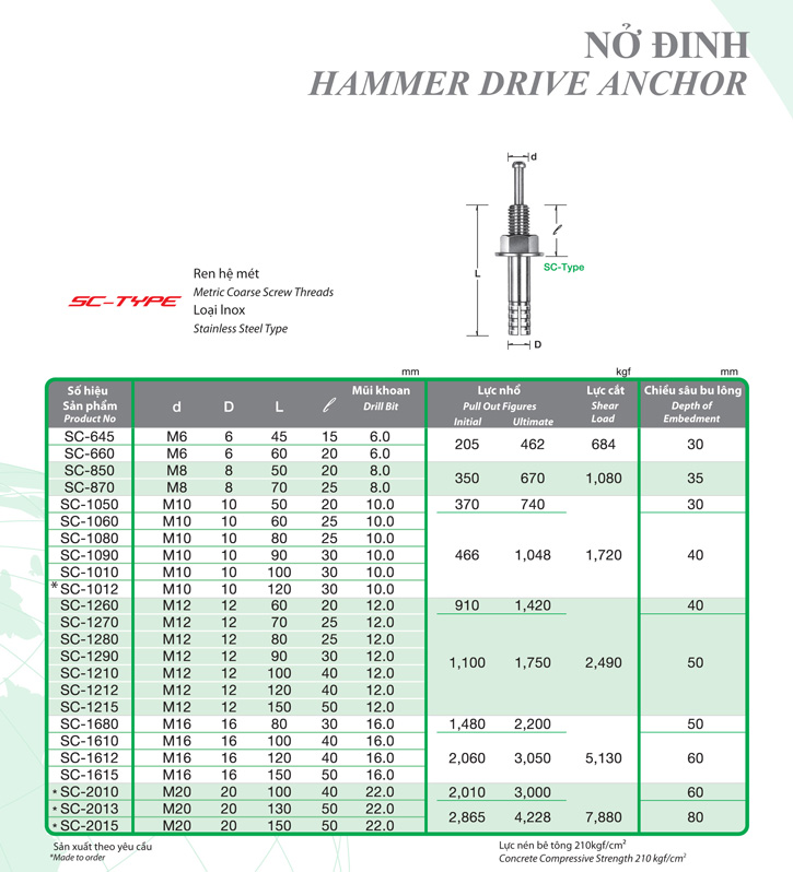 Dưới đây là bảng thông số kỹ thuật của nở đinh Sanko mà cơ khí Việt Hàn đang phân phối đến quý khách hàng. Quý khách hàng tham khảo thông số kỹ thuật, nếu có thắc mắc, vui lòng liên hệ trực tiếp đến cơ khí Việt hàn để được giải đáp.